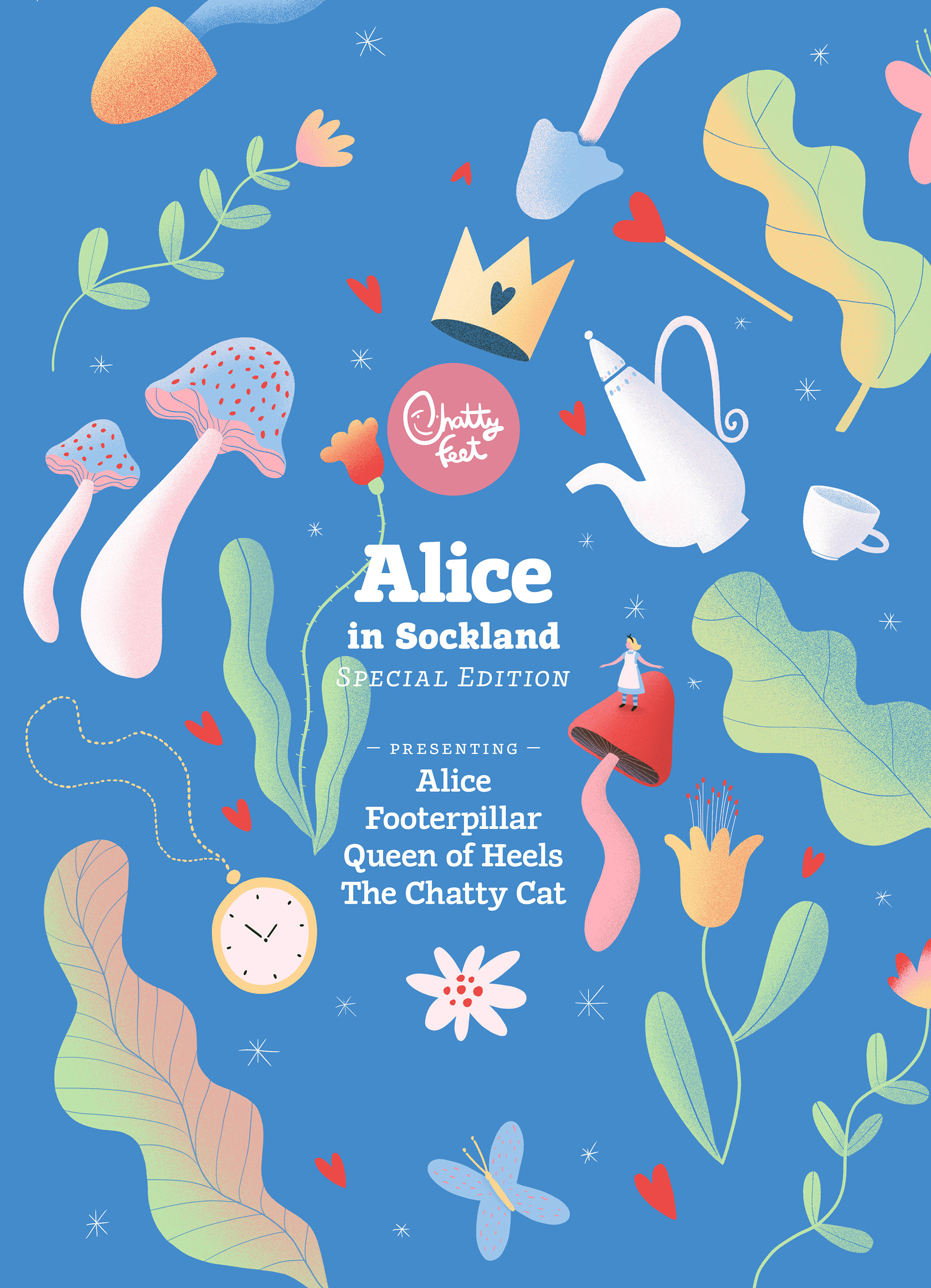 I was commissioned by Chatty Feet to design a collection of socks inspired by Alice in Wonderland