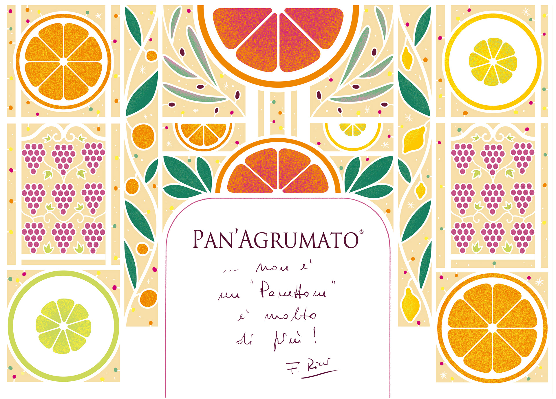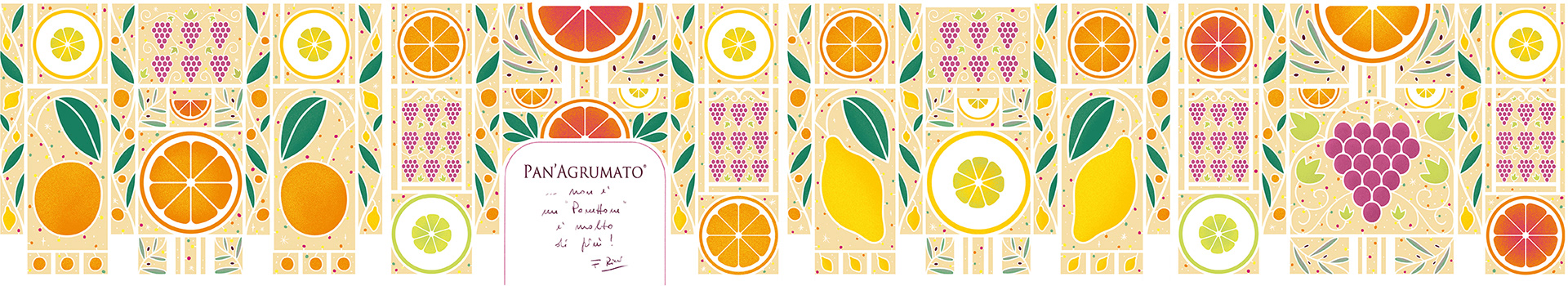 I was commissioned by Agrumato to design an illustrated packaging for their Pan'Agrumato, an evolution of the famous Italian Christmas dessert "Panettone" made with extra virgin olive oil.
